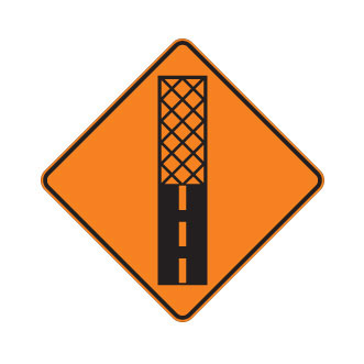 Le panneau « Changement de l’état d’une chaussée » (T-D-340) indique l’approche d’une chaussée rainurée ou, sur un pont, d’un tablier en treillis métallique ou en bois.