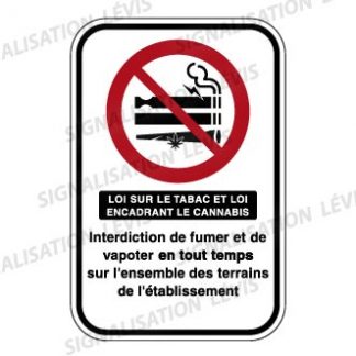 Le panneau « Interdiction de fumer et de vapoter » indique qu’il est interdit de fumer sur l’ensemble des terrains de l’établissement.