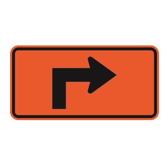 Le panonceau de direction (T-240-P-5-D), qui peut être fixé au-dessous du panneau « Zone de travaux » (T-50-1), indique l’endroit où ont lieu les travaux lorsqu’ils sont réalisés à proximité d’une intersection.