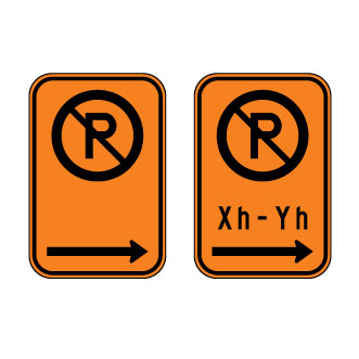 Les panneaux « Réglementation temporaire du stationnement » (T-75) indiquent les endroits où le stationnement est interdit de façon temporaire à proximité d’une aire de travail ou lors d’événements spéciaux et d’opérations d’entretien routier.